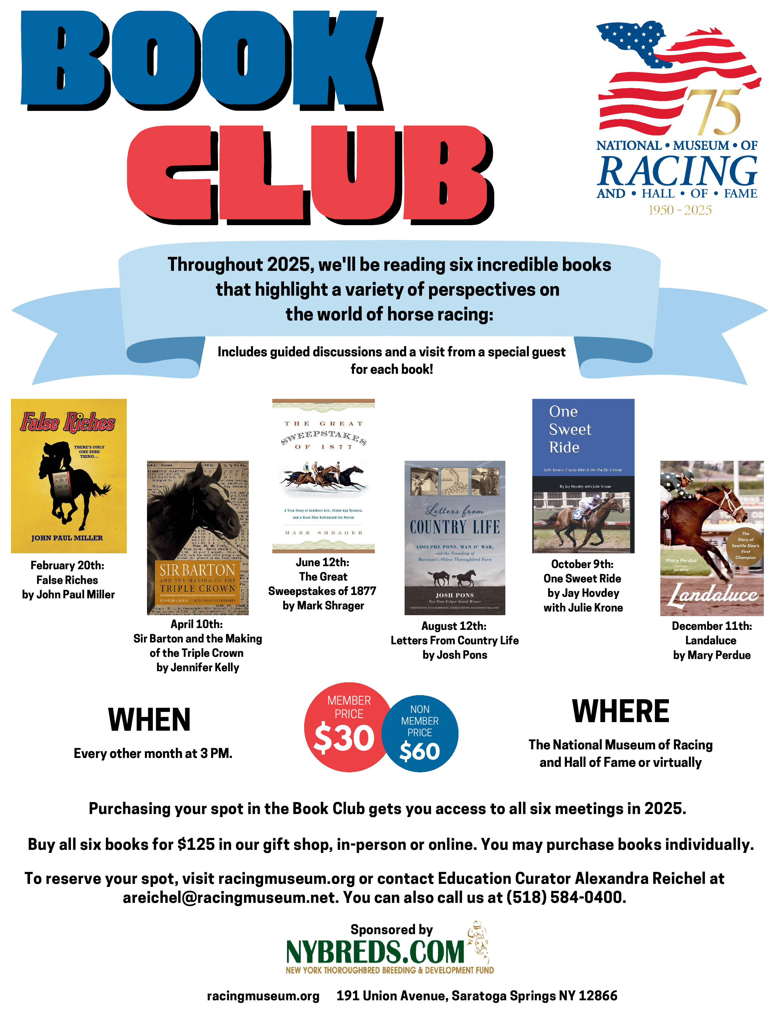 The 2025 book club has begun, and signups are now closed. If you would still like to join the club as a late admission, please contact the education curator Alex Reichel at areichel@racingmuseum.net