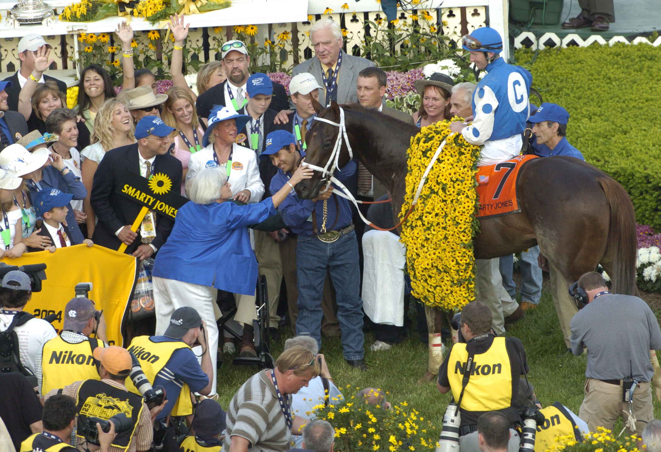A Belmont Park record 120,139 fans were on hand for a potential Triple Crown sweep in the 2004 Belmont Stakes, but 36-1 longshot Birdstone pulled off the upset, defeating Smarty Jones by a length.