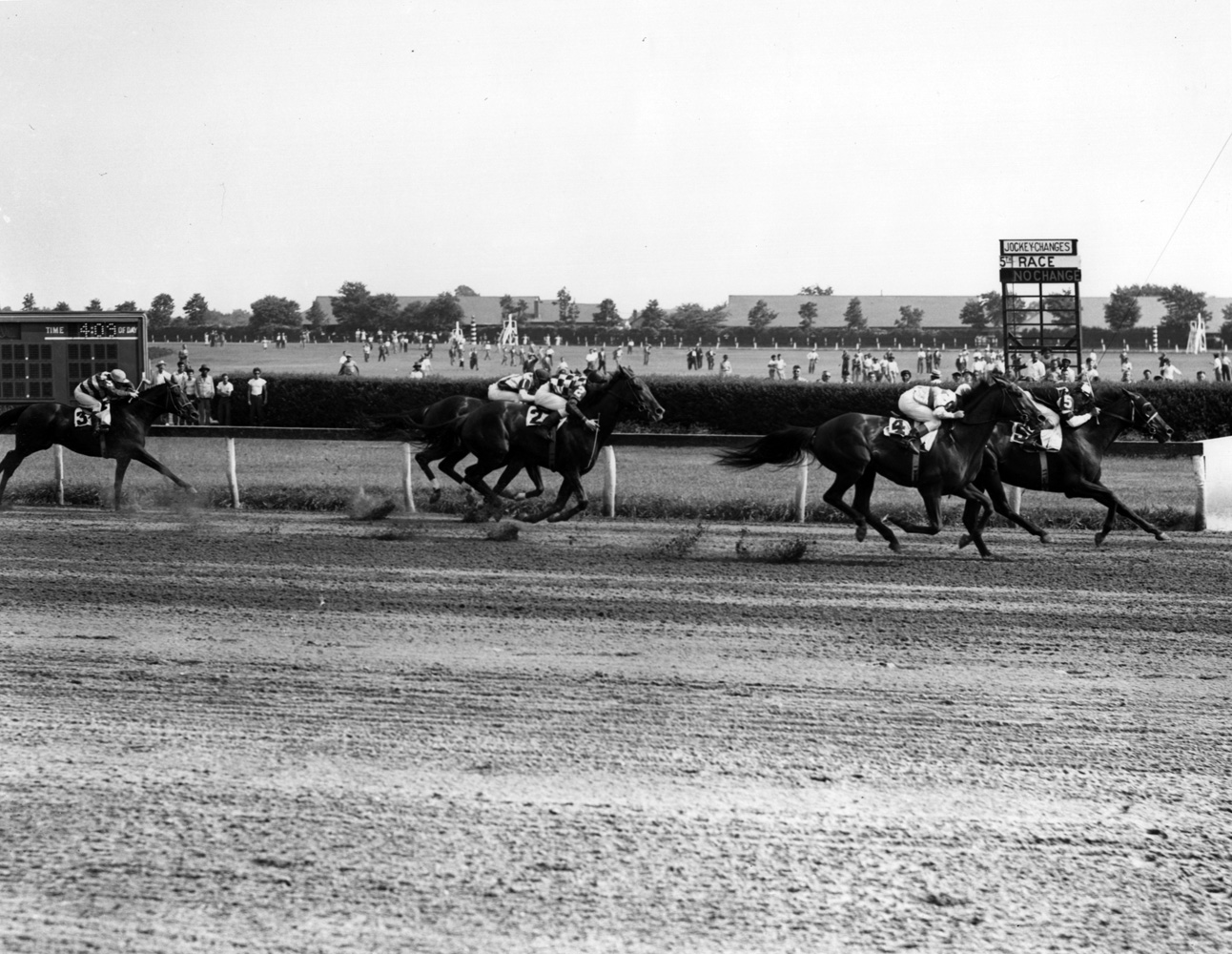 Hirsch decided to replace Mehrtens with Eddie Arcaro for the winner-take-all Pimlico Special. Leading the field was Hall of Famer Stymie, who had defeated Assault in their previous two meetings. A speed duel up front between Bridal Flower and Turbine left the field 15 lengths back, but Arcaro sat chilly until Stymie made his move. Once the pacesetters faded and once Stymie kicked in, Arcaro turned Assault loose to win by six lengths in 1:57 flat, six seconds faster than he ran in the Preakness on the same track six months earlier.