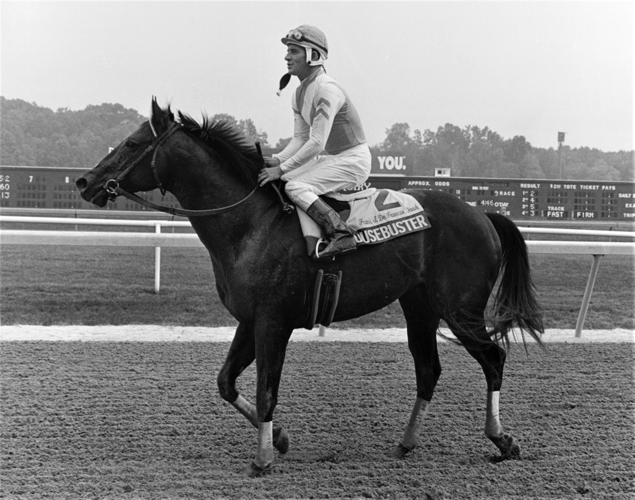 As a 2-year-old in 1989, Housebuster won two of his three starts, each of which was at the Meadowlands. The following year, Housebuster posted a record of 9-0-1 from 11 starts and earned $651,236. He won the Grade 1 Jerome, the Grade 2 Withers and six Grade 3 events — the King’s Bishop, Sheridan, Derby Trial, Lafayette, Swale, and Hutcheson. From November of 1989 through early May of 1990, Housebuster fashioned an eight-race win streak. His brilliant 3-year-old campaign was rewarded with the Eclipse Award for Outstanding Sprinter.