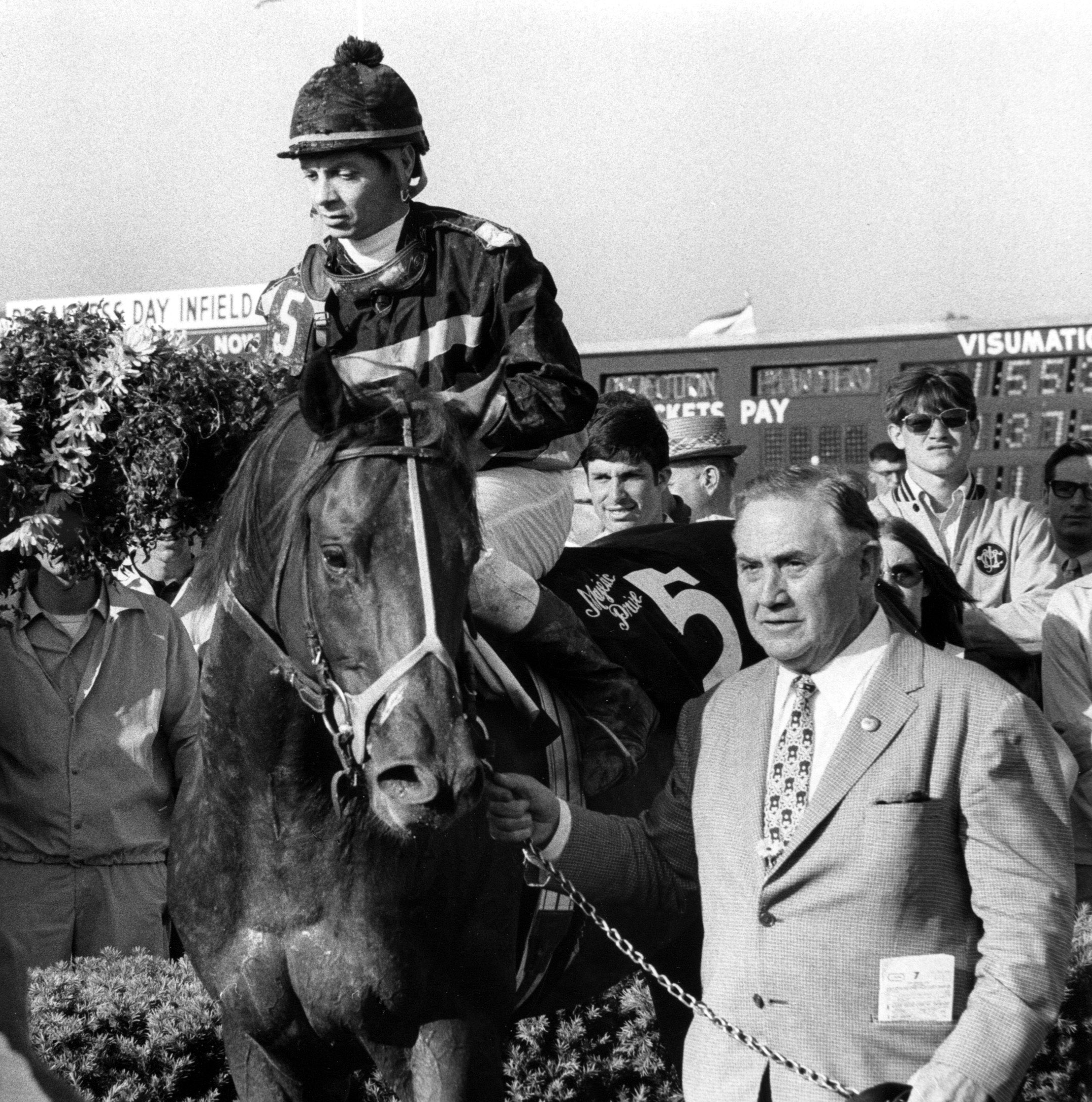 A record-priced yearling at auction, Majestic Prince became the first horse to win both the Kentucky Derby and Preakness Stakes while undefeated.