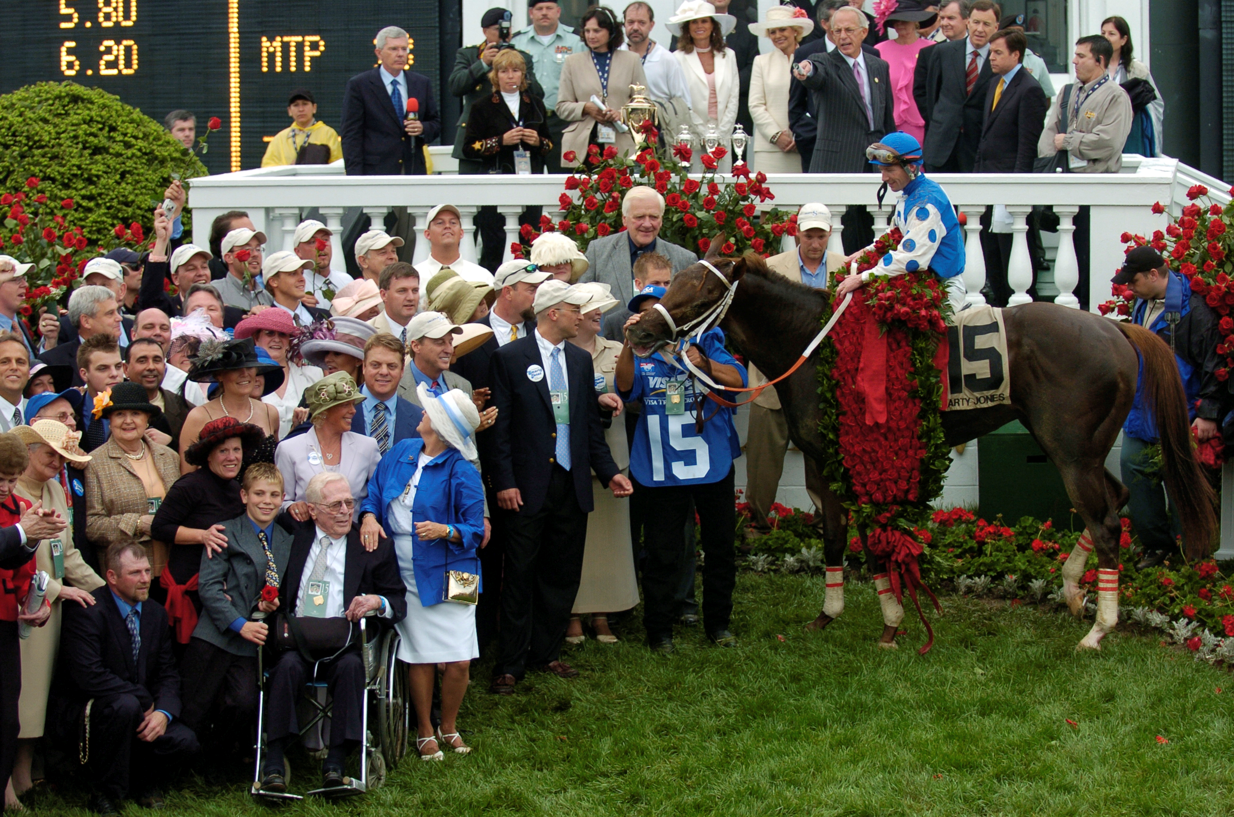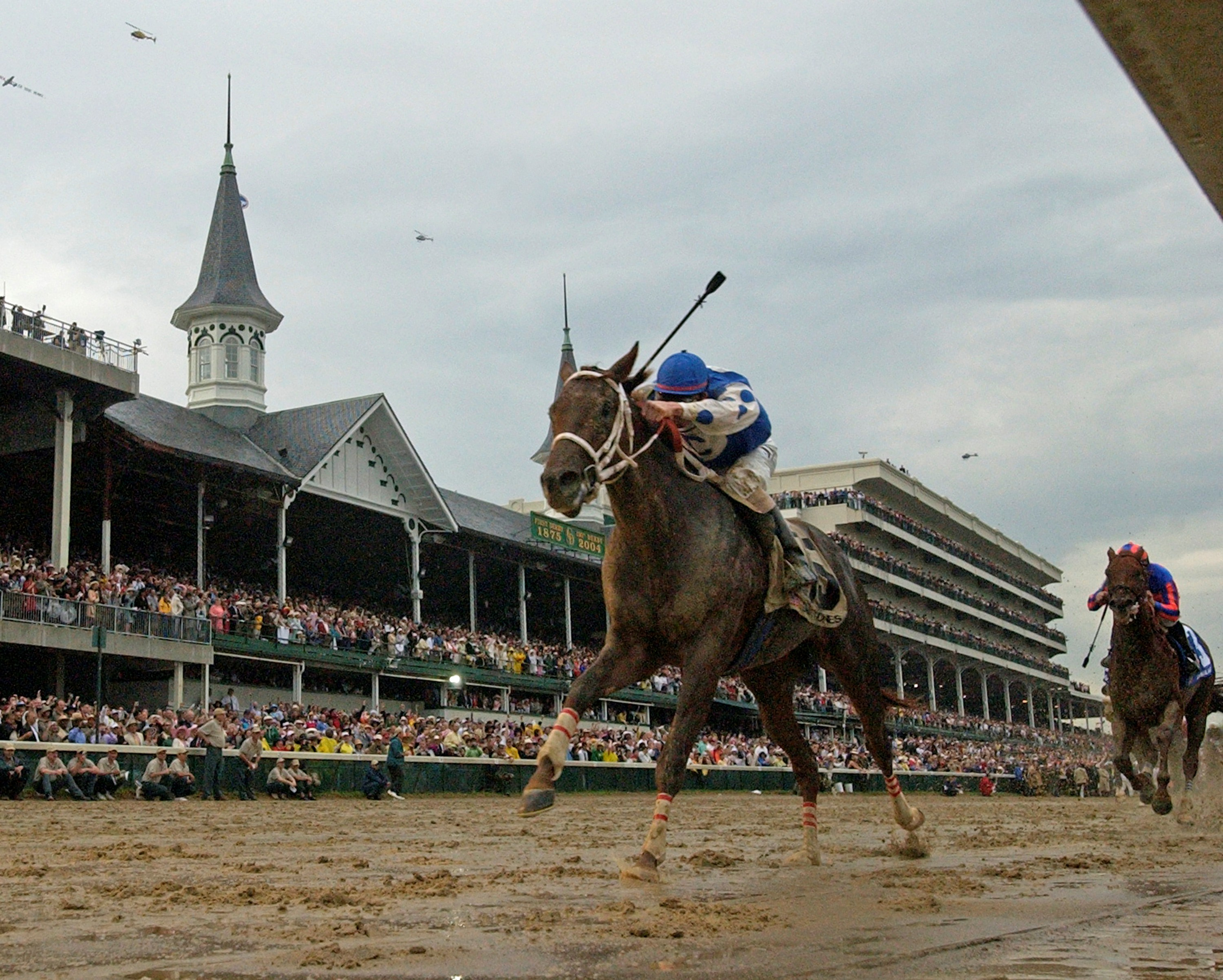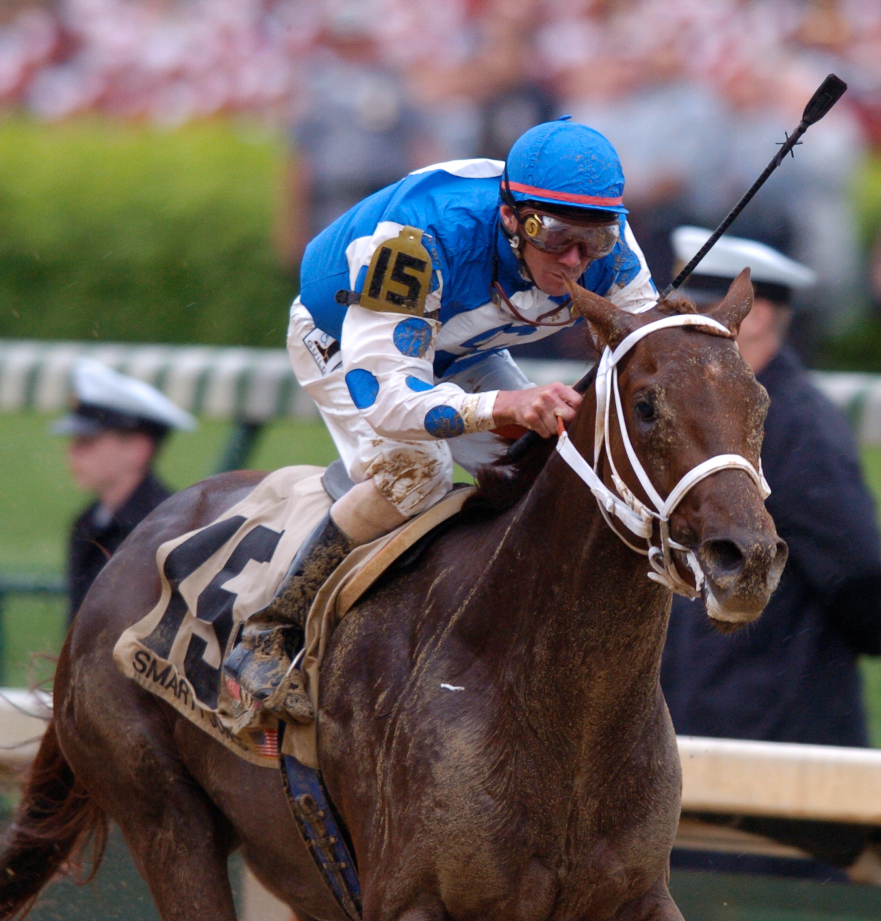 The Arkansas Derby was a stellar performance by Smarty Jones. As the even-money favorite, he was asked to carry his speed 1⅛ miles from the outside post (11) over an off track for the first time. The Oaklawn crowd of 62,254 roared as Smarty Jones took command in the stretch, bringing Roy Chapman to tears as he knew his horse was going to be bound for the Kentucky Derby.