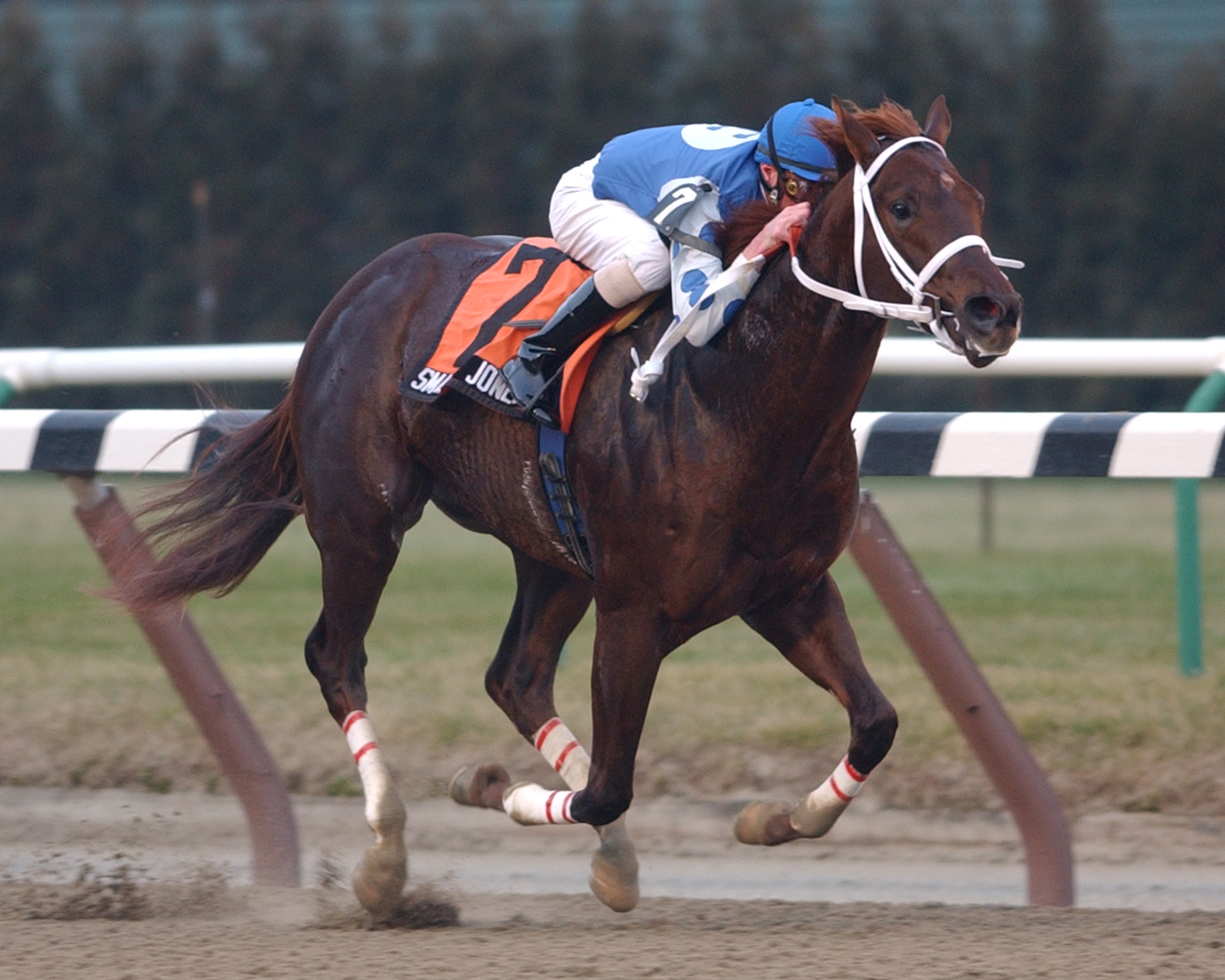 As the calendar turned to 2004, Smarty Jones began his road to the Kentucky Derby in New York with a stylish five-length January victory in the listed Count Fleet Stakes at Aqueduct Racetrack. It was then off to Oaklawn Park for more winter magic. In Arkansas, Smarty Jones won the listed Southwest Stakes in February by three-quarters of a length and followed with a 3¼-length win in the listed Rebel Stakes in March.