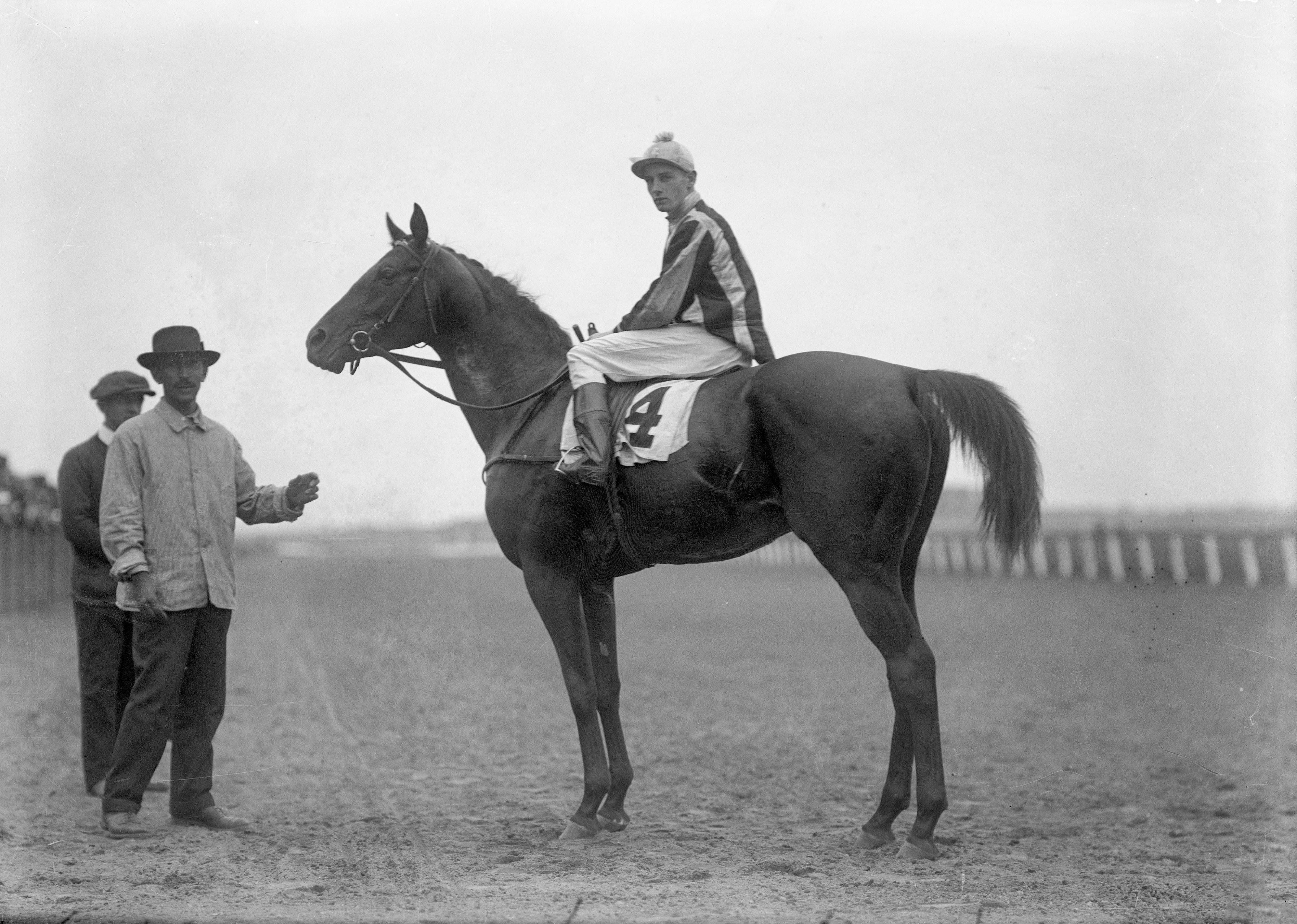 The leading money-winning jockey in North America in 1920 when he posted career-highs of 87 wins and purse earnings of $292,376, Clarence Kummer piloted Hall of Famer Man o’ War to nine of the mighty colt’s 11 victories that year, including the Preakness Stakes and Belmont Stakes.