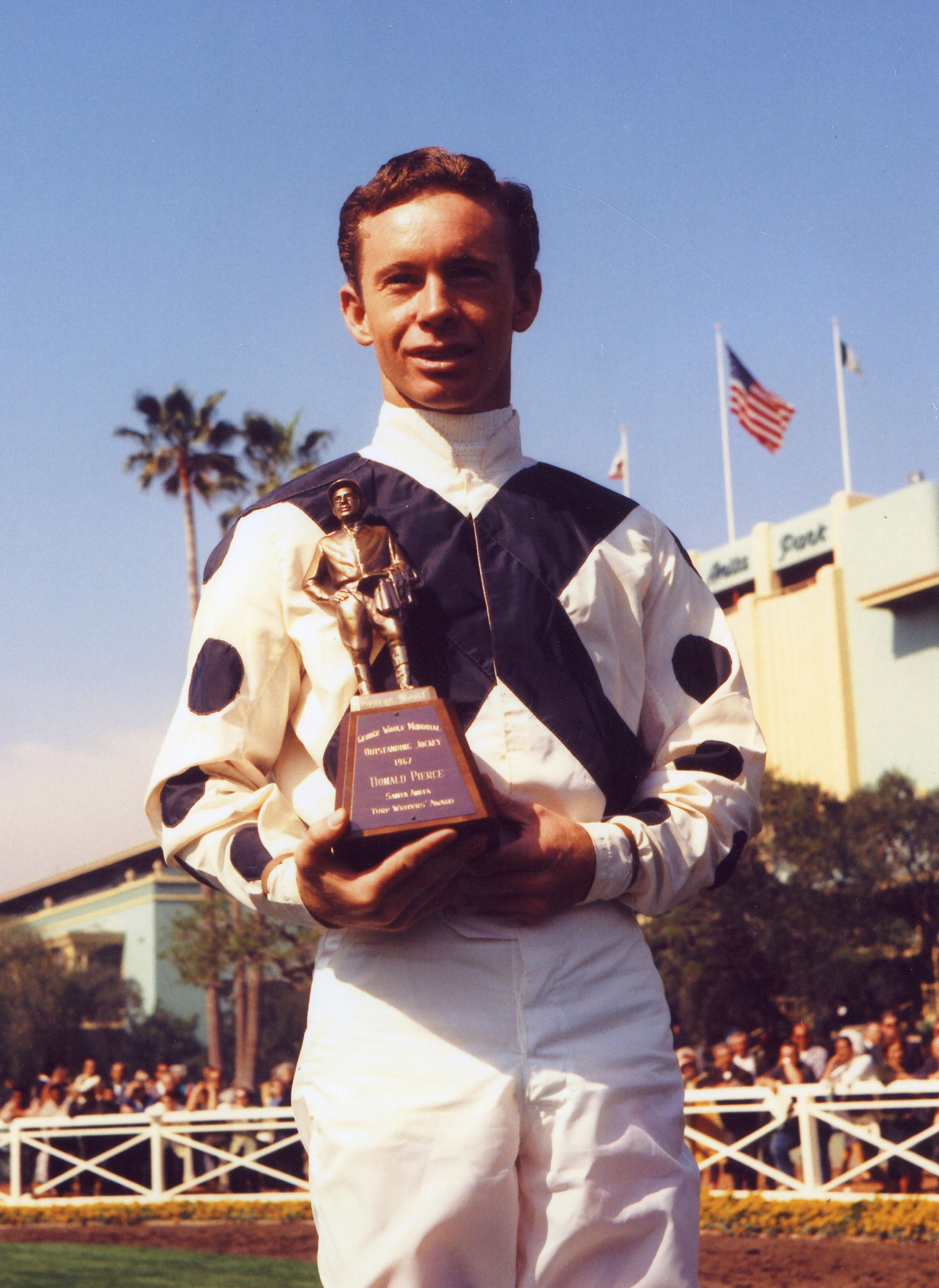 Don Pierce rose from humble racing roots to become one of the big money riders of the 1960s and 1970s. A native of Clebit, Oklahoma, Pierce began his career with a victory at New Mexico’s Ruidoso Downs in 1954 and went on to become one of the most accomplished jockeys on the Southern California circuit. Furthermore, he enjoyed success at numerous tracks throughout the United States and internationally.