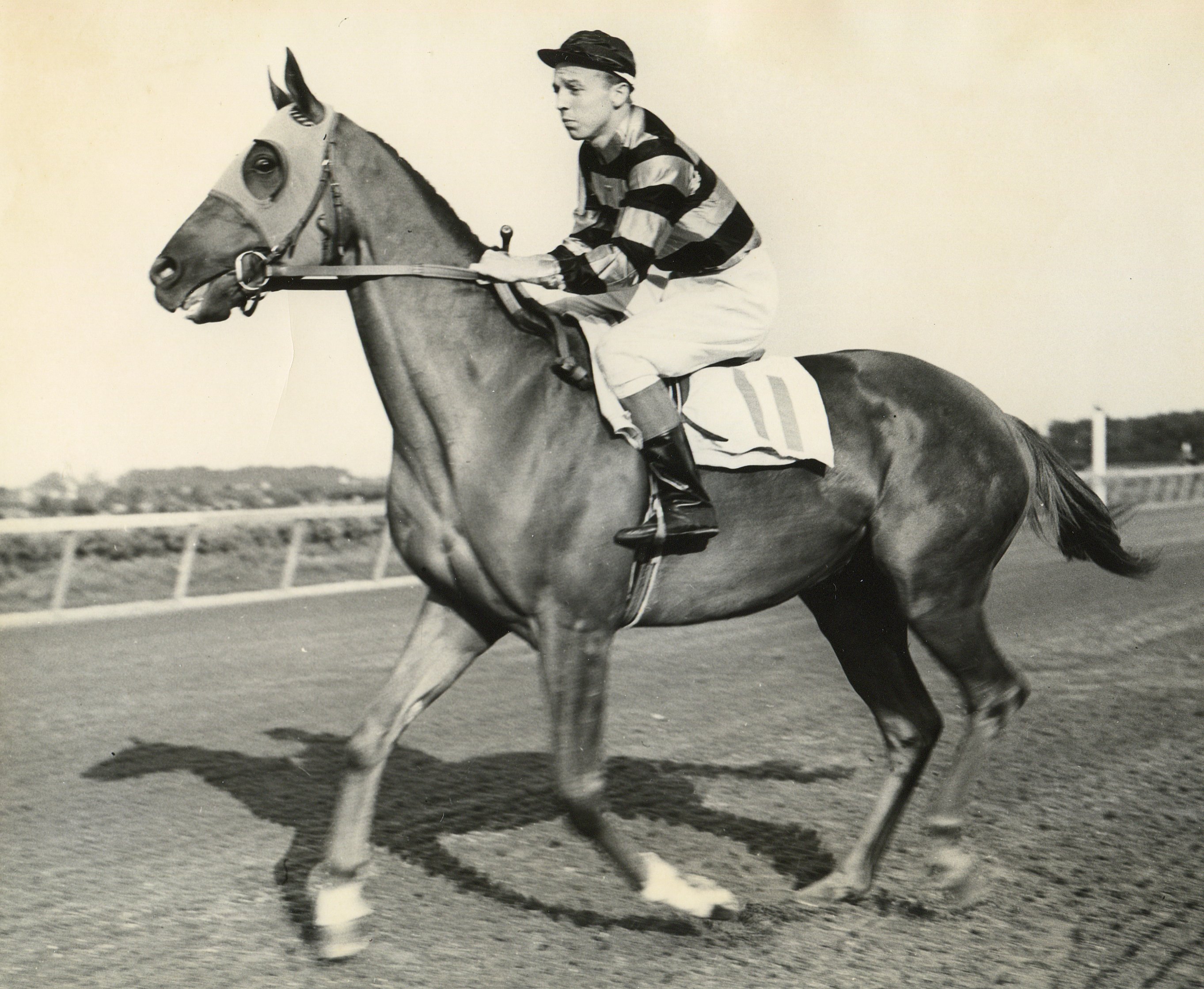 Wright led all jockeys in earnings in 1934 with $287,185 and won 174 races to rank fifth nationally. He won his first Triple Crown race that year at the age of 17 when he piloted Joseph E. Widener’s Peace Chance to win the Belmont Stakes, defeating Preakness winner High Quest by six lengths. Prior to the Belmont, Wright was aboard Peace Chance when he set a stakes record of 1:35⅘ for one mile in the Derby Trial. The record time stood until 1952 when Hill Gail clocked 1:35⅖. In 1936, Wright again led all riders in earnings at $264,000.