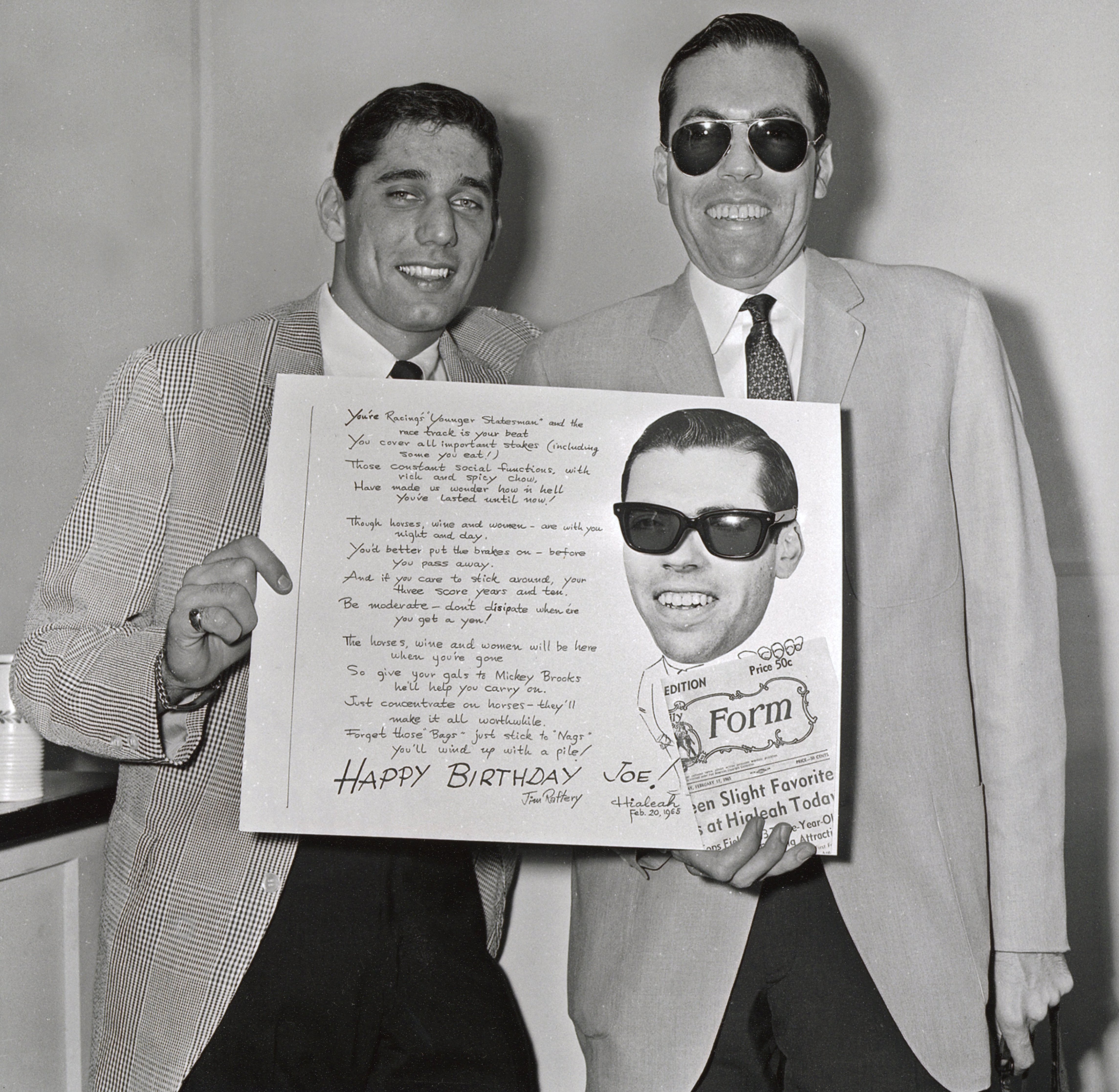 Dan Liebman, then editor-in-chief of The BloodHorse, extolled that “Joe was the epitome of class, strolling the backside in his trademark dark sunglasses and wearing a sport coat and tie. He was famous for using a tiny notebook and writing very little in it. He would listen to a trainer for 15 minutes, jot down three or four words, and later pound out a column with verbatim quotes and accurate workout times. The notebook that did have a lot written in it was Joe’s compilation of phone numbers. Every trainer was happy to be called to his stable office when Joe was on the line.”